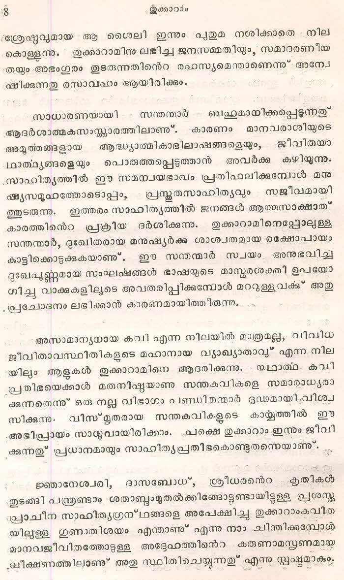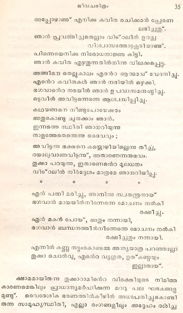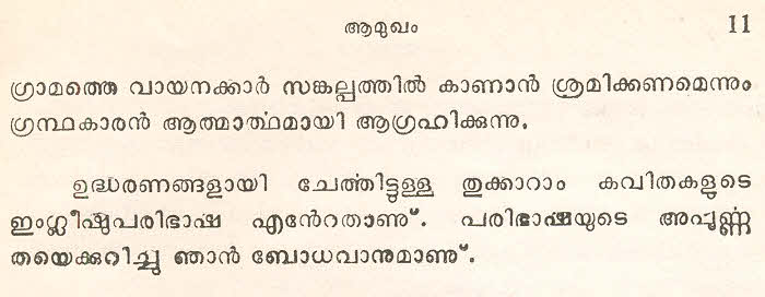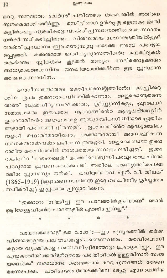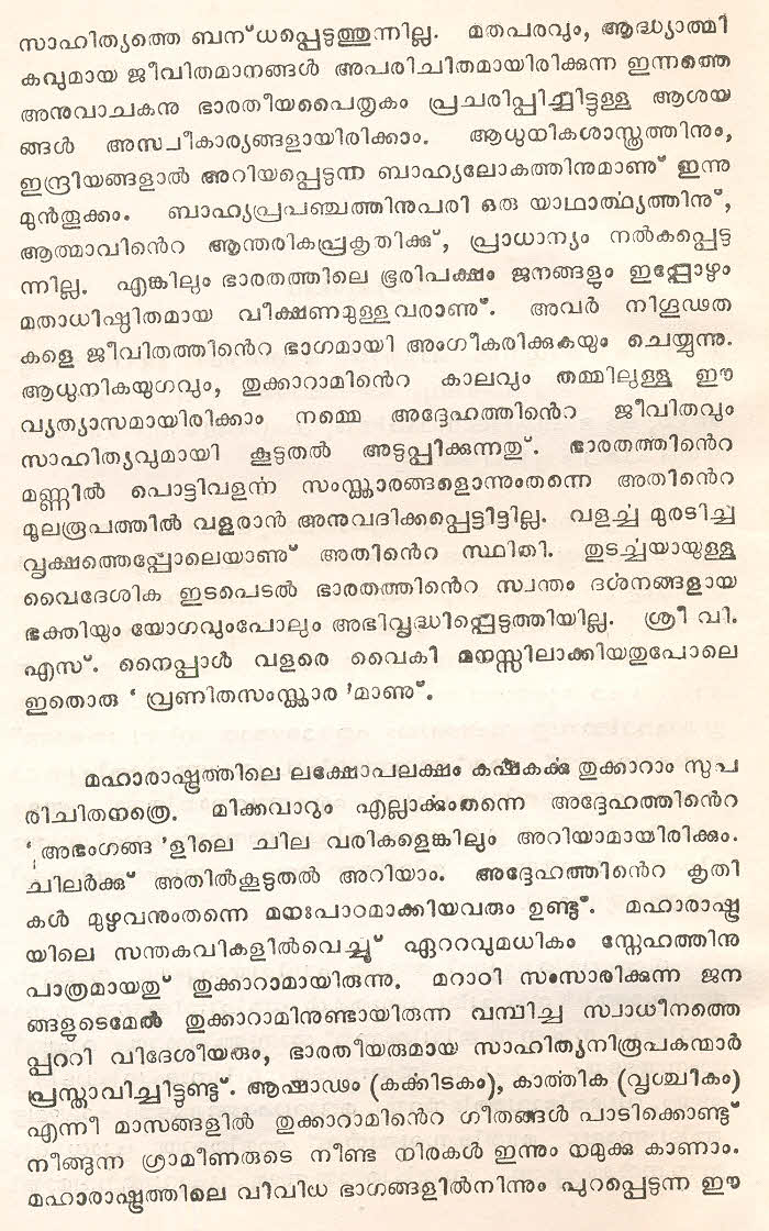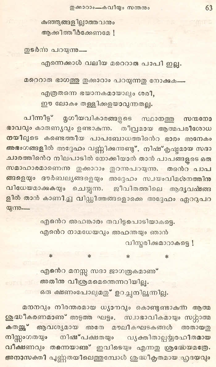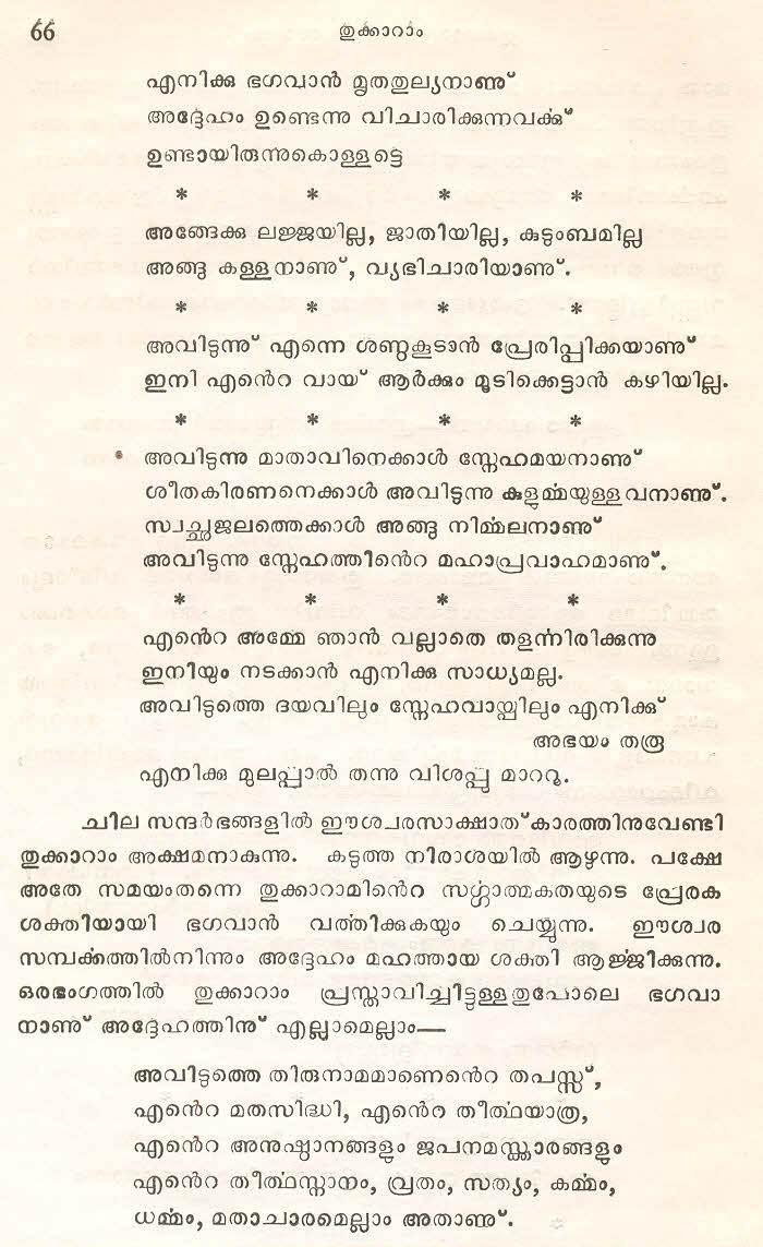 സന്ത് തുക്കാറാം മഹാറാജിന്റെ തെരഞ്ഞെടുത്ത മറാഠി അഭംഗങ്ങള് മലയാളം ഭാഷയില് ലിപ്യന്തരണം ചെയ്ത് അര്ത്ഥസംഗ്രഹത്തോടൊപ്പം ഈ സമാഹരത്തില് ഉള്പ്പെടുത്തിയിട്ടുണ്ട്. ഇത് ഒരു എളിയ സംരംഭമാണ്. തുക്കാറാം മഹാറാജിന്റെ കൂടുതല് അഭംഗങ്ങളും, സന്ത് ജ്ഞാനേശ്വര്, സന്ത് നാംദേവ്, സന്ത് ഏക്നാഥ് എന്നീ ഭക്തകവികളുടെ അഭംഗങ്ങളും ഇതുപോലെ സജ്ജന സമക്ഷം എത്തിക്കാന് കഴിയട്ടെ എന്ന് പ്രാര്ത്ഥിക്കുന്നു.