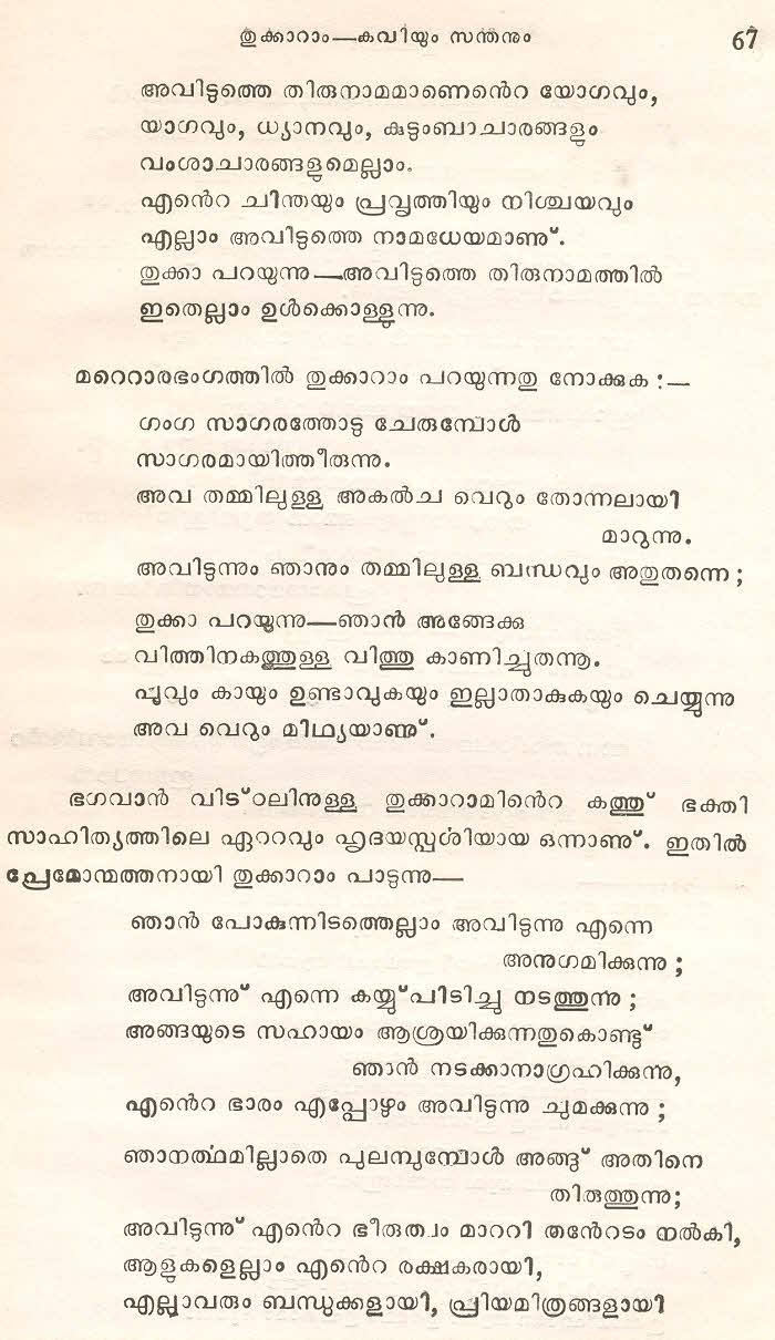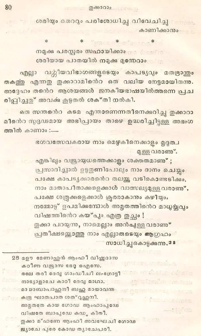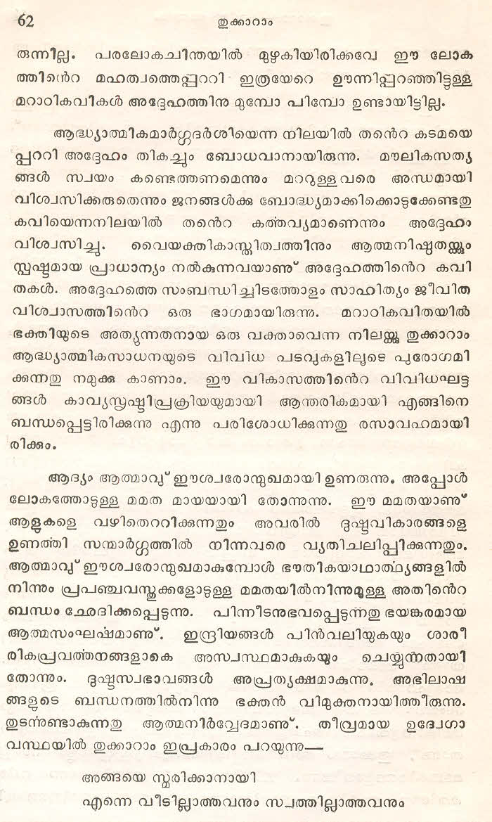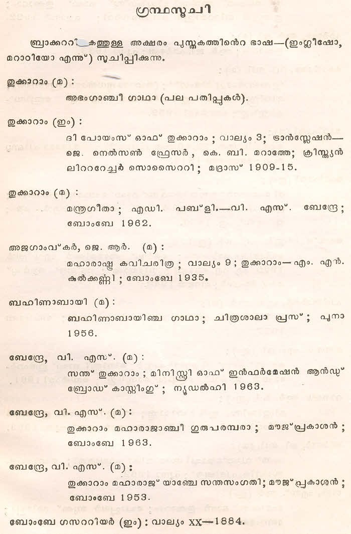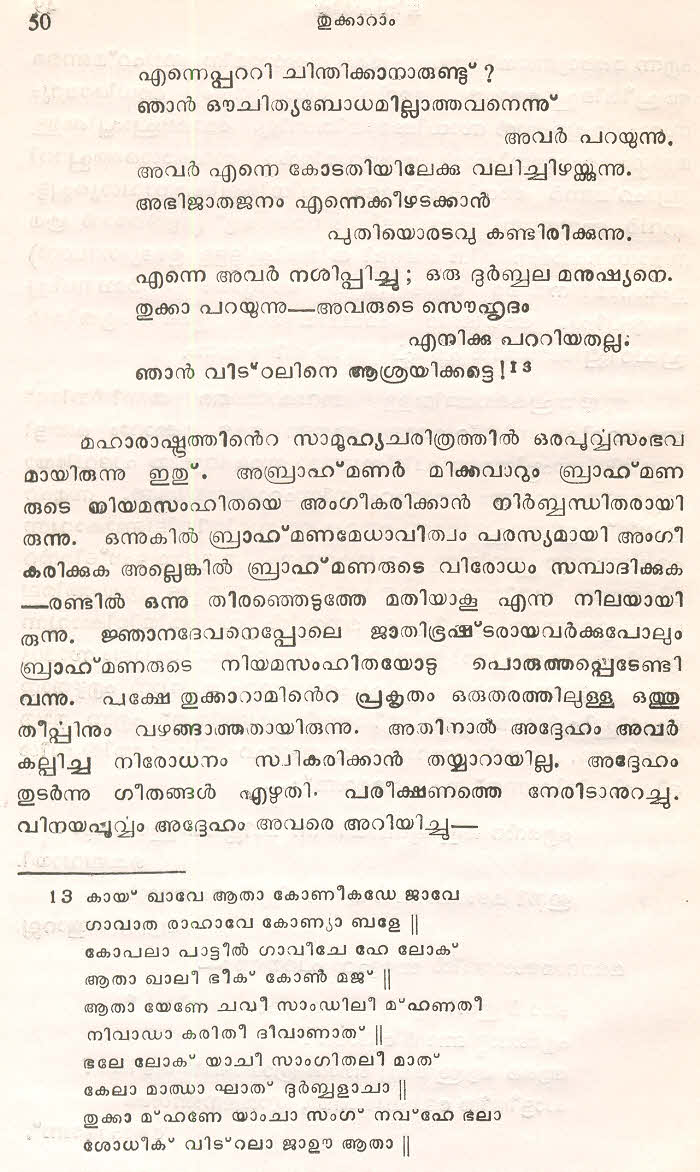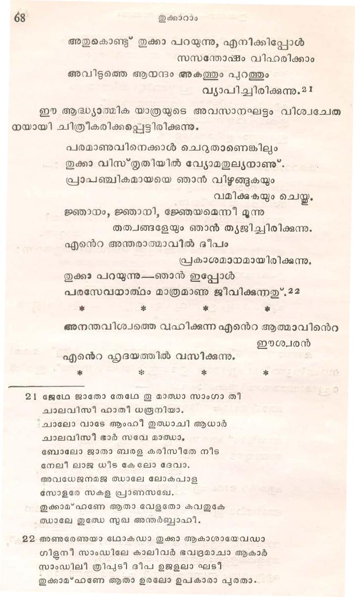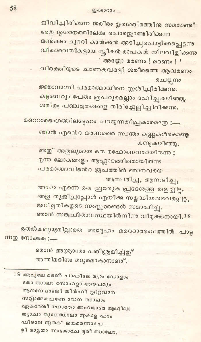 (Selected Abhangs in Marathi by the Saint Poet Tukaram Maharaj transliteration and with meaning given in Malayalam)