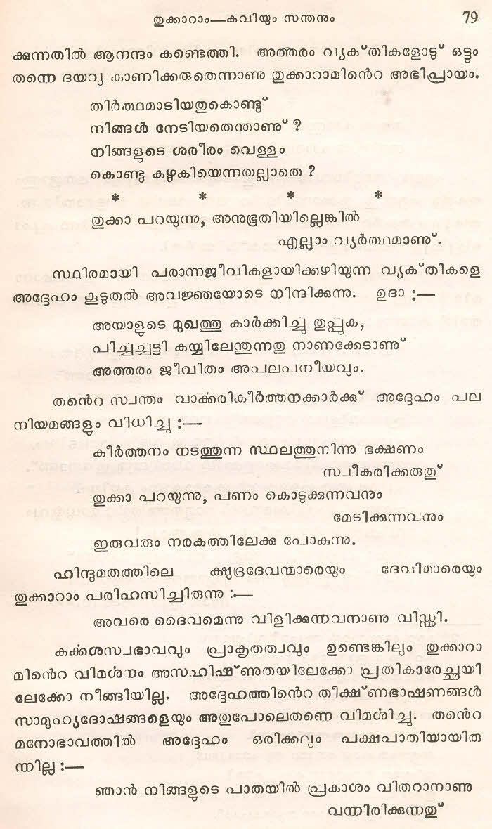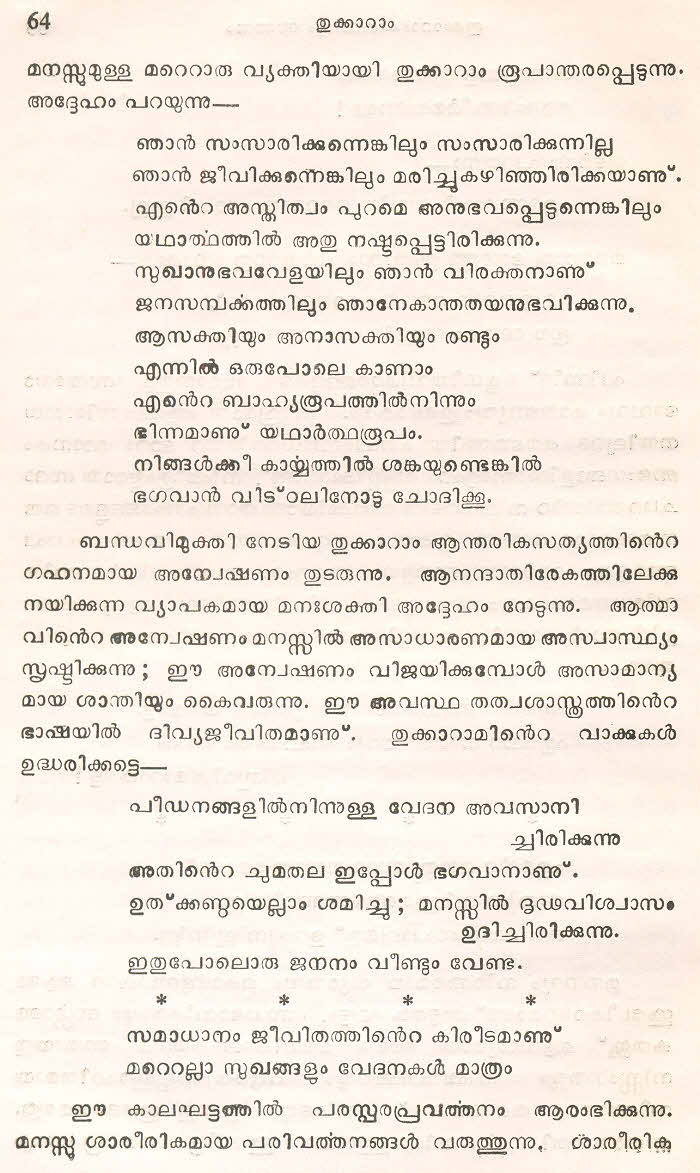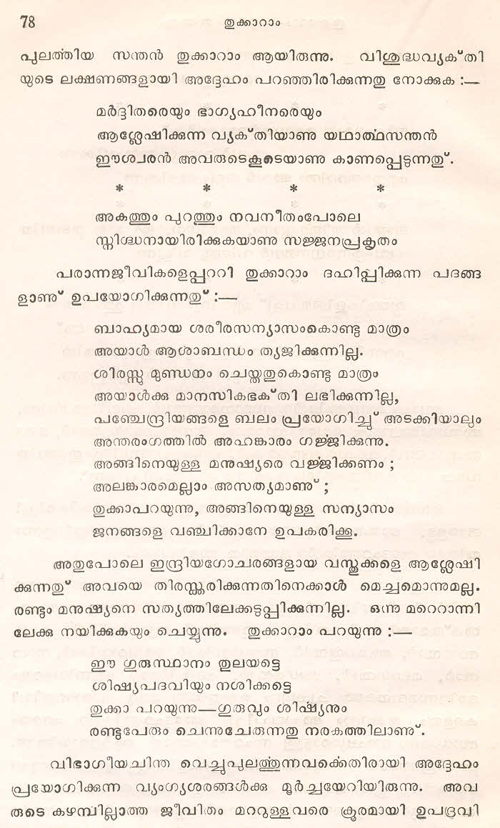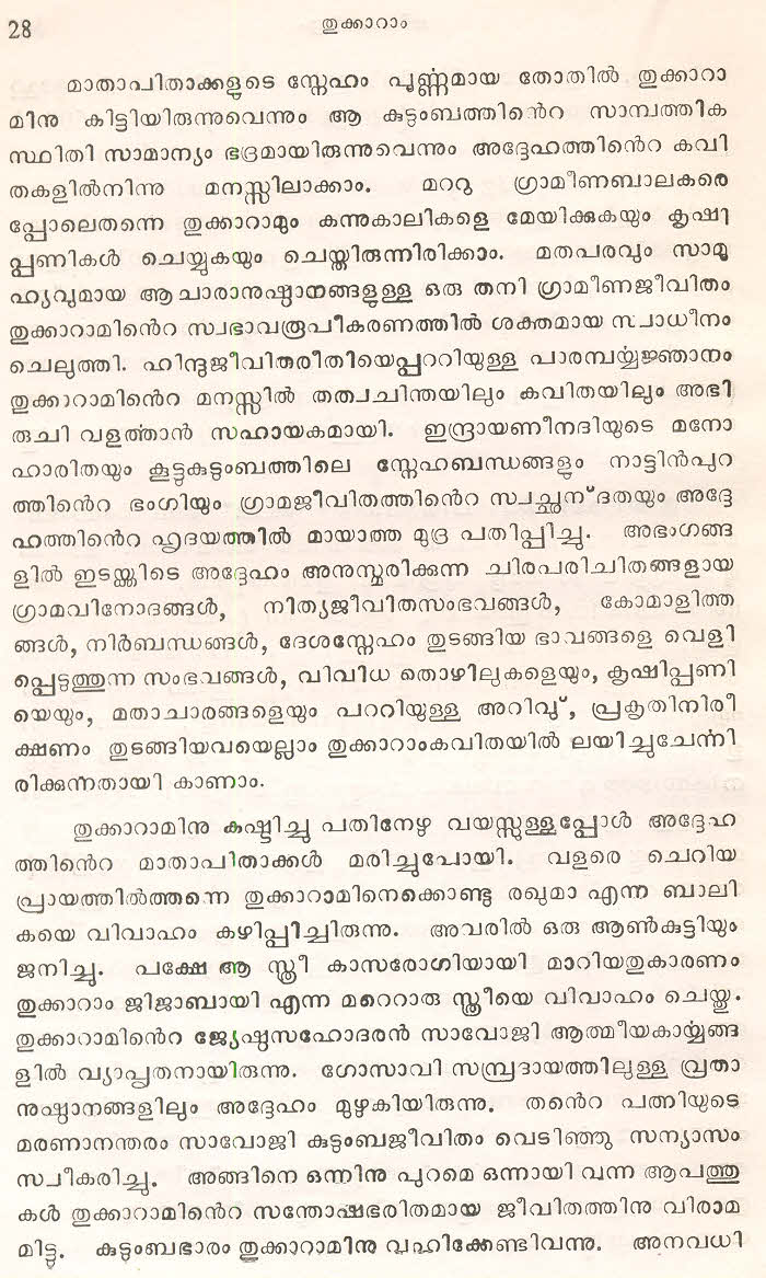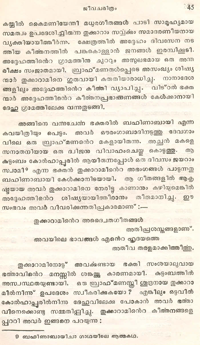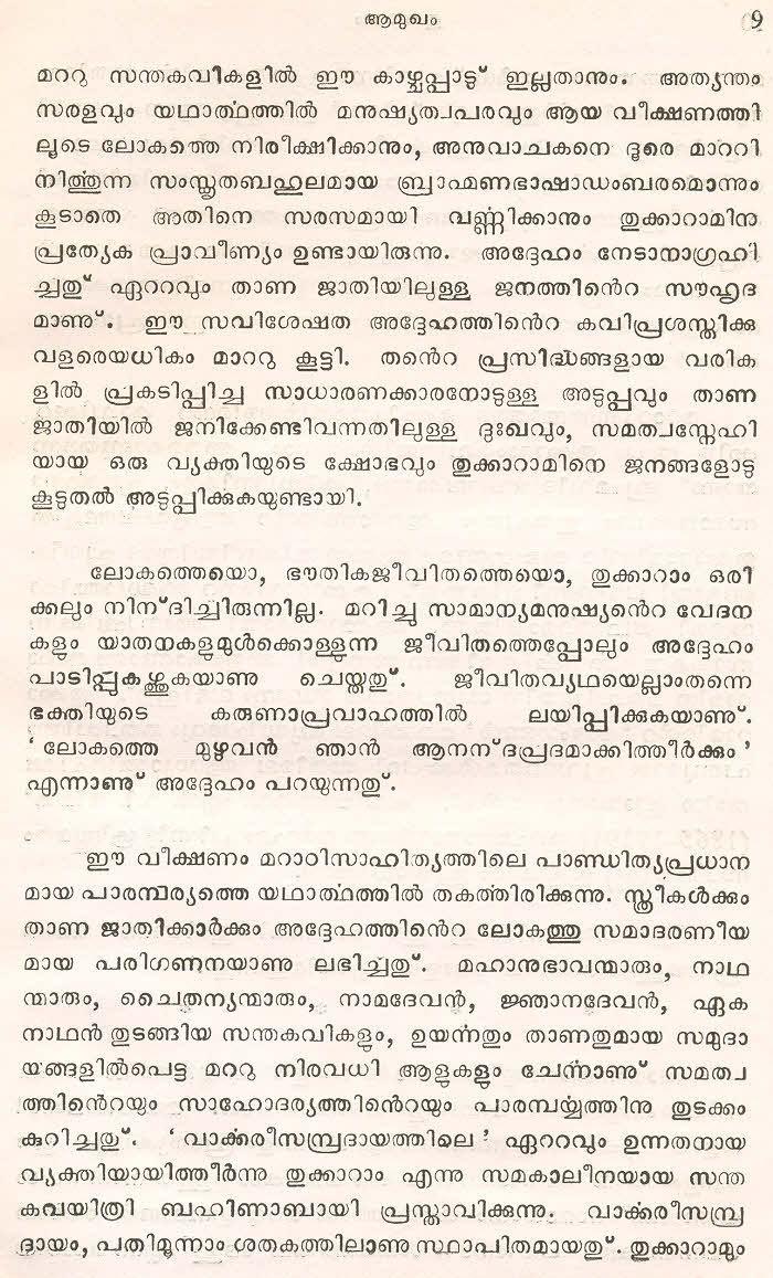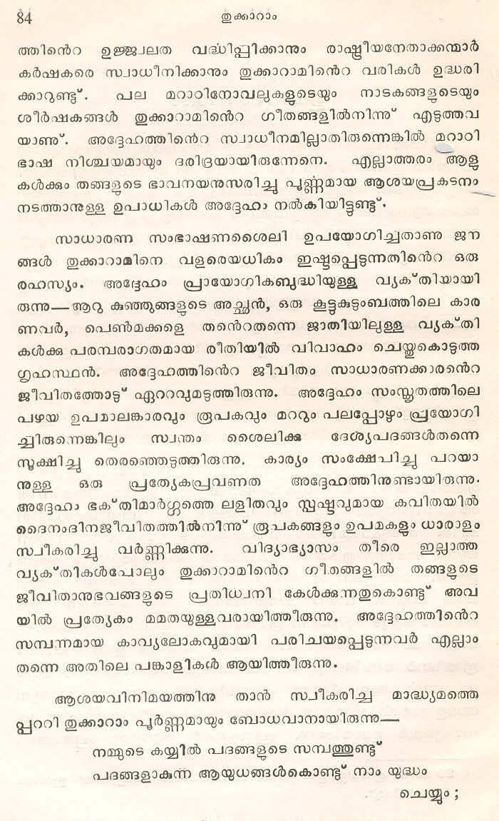 (Selected Abhangs in Marathi by the Saint Poet Tukaram Maharaj transliteration and with meaning given in Malayalam)