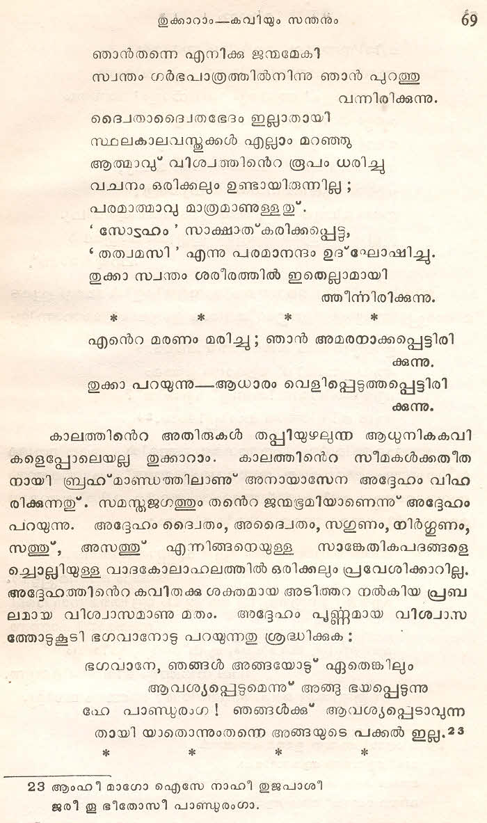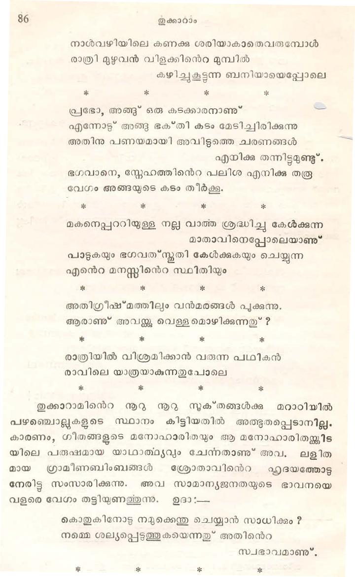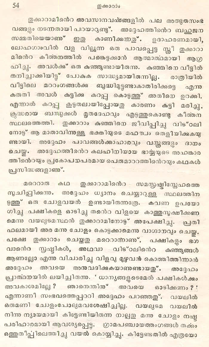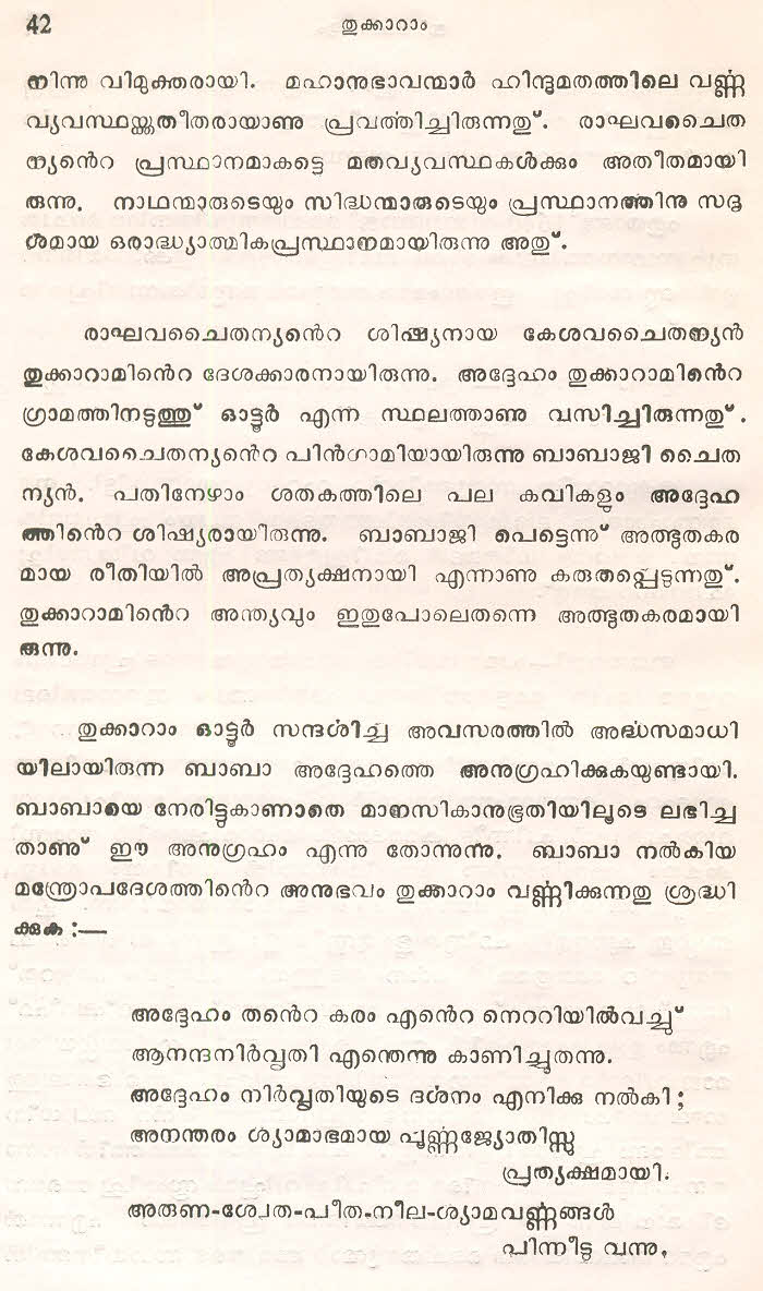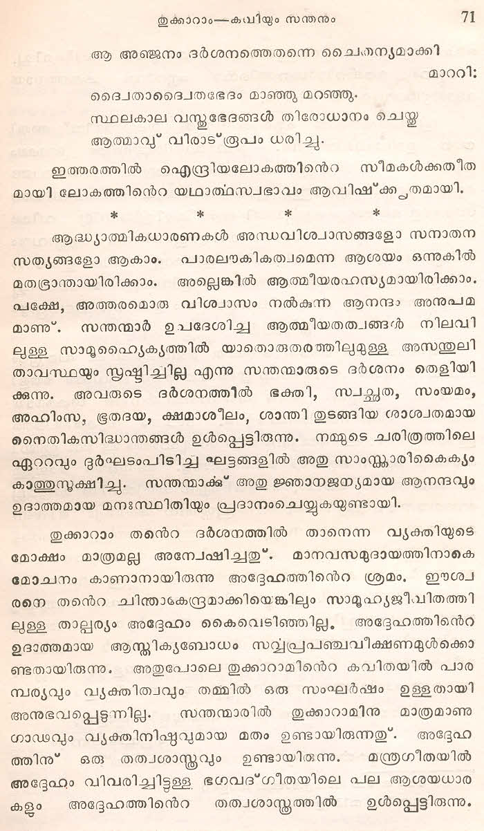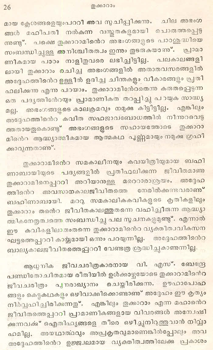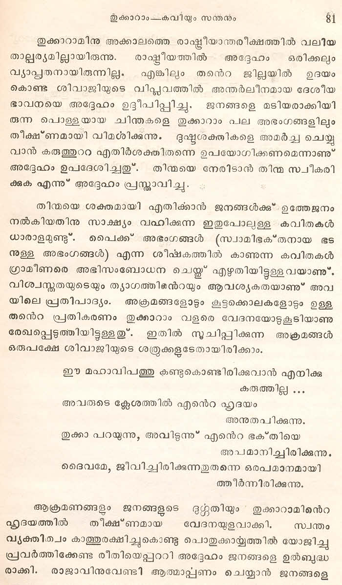 (Selected Abhangs in Marathi by the Saint Poet Tukaram Maharaj transliteration and with meaning given in Malayalam)