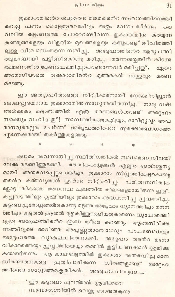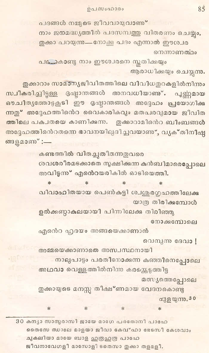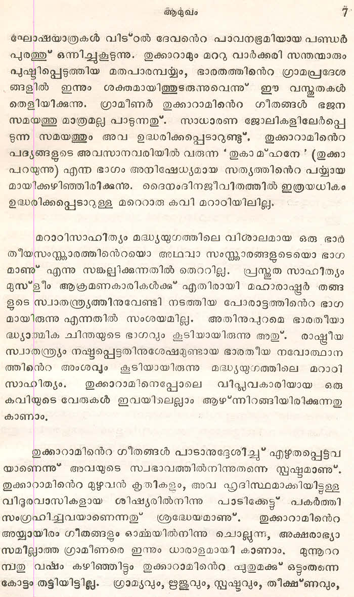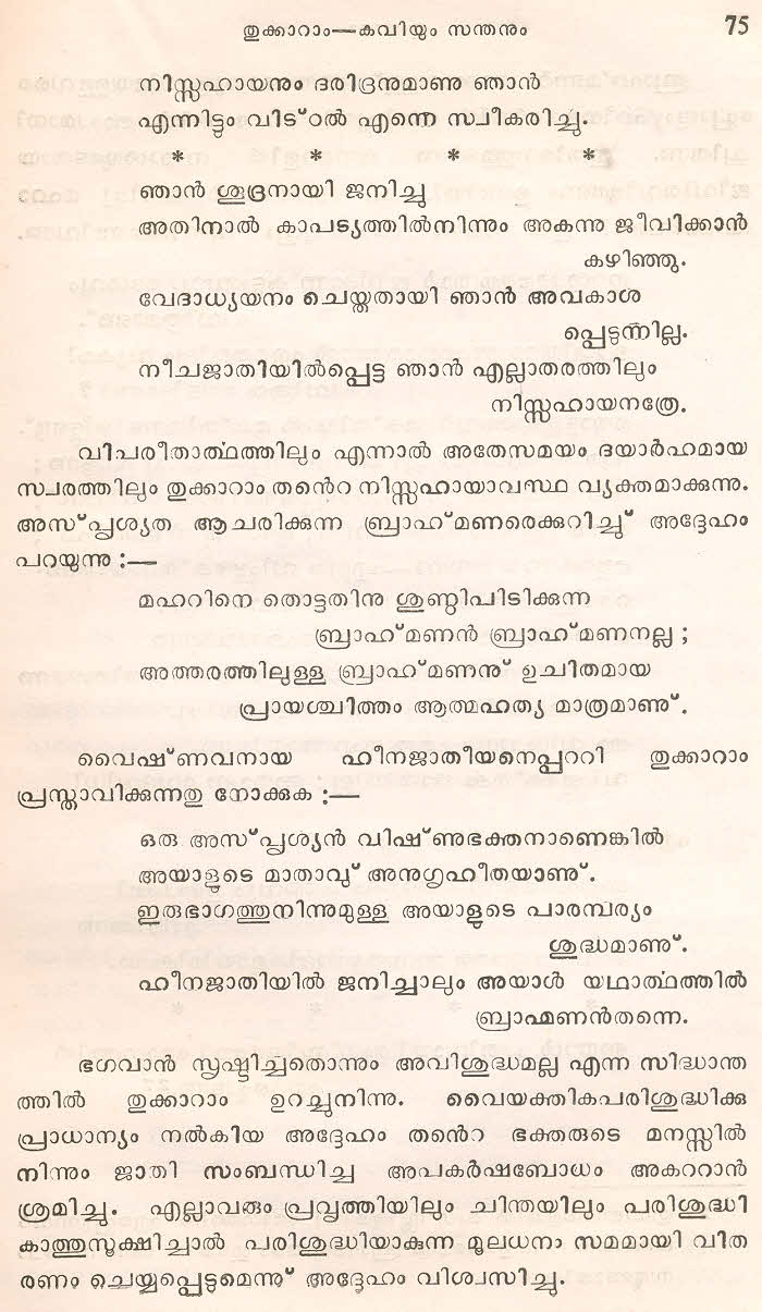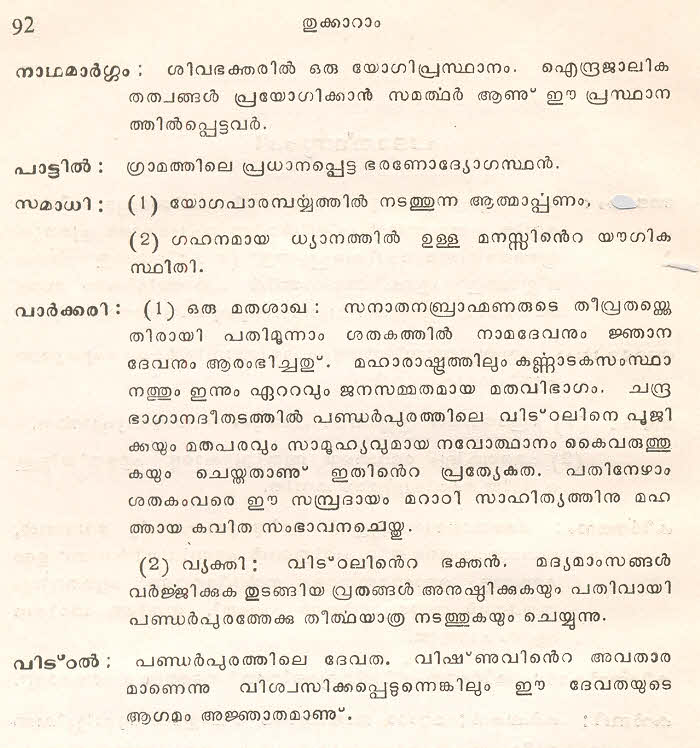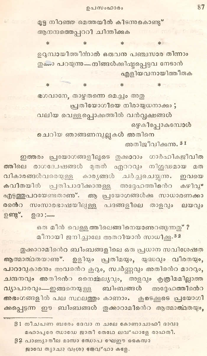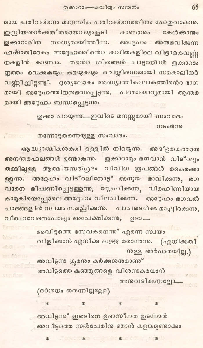 (Selected Abhangs in Marathi by the Saint Poet Tukaram Maharaj transliteration and with meaning given in Malayalam)