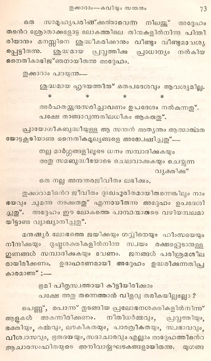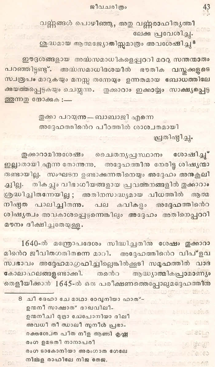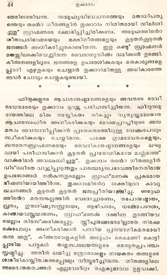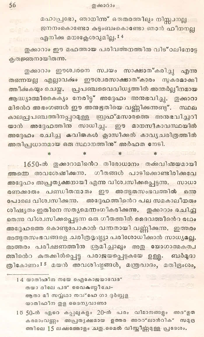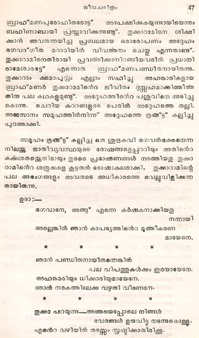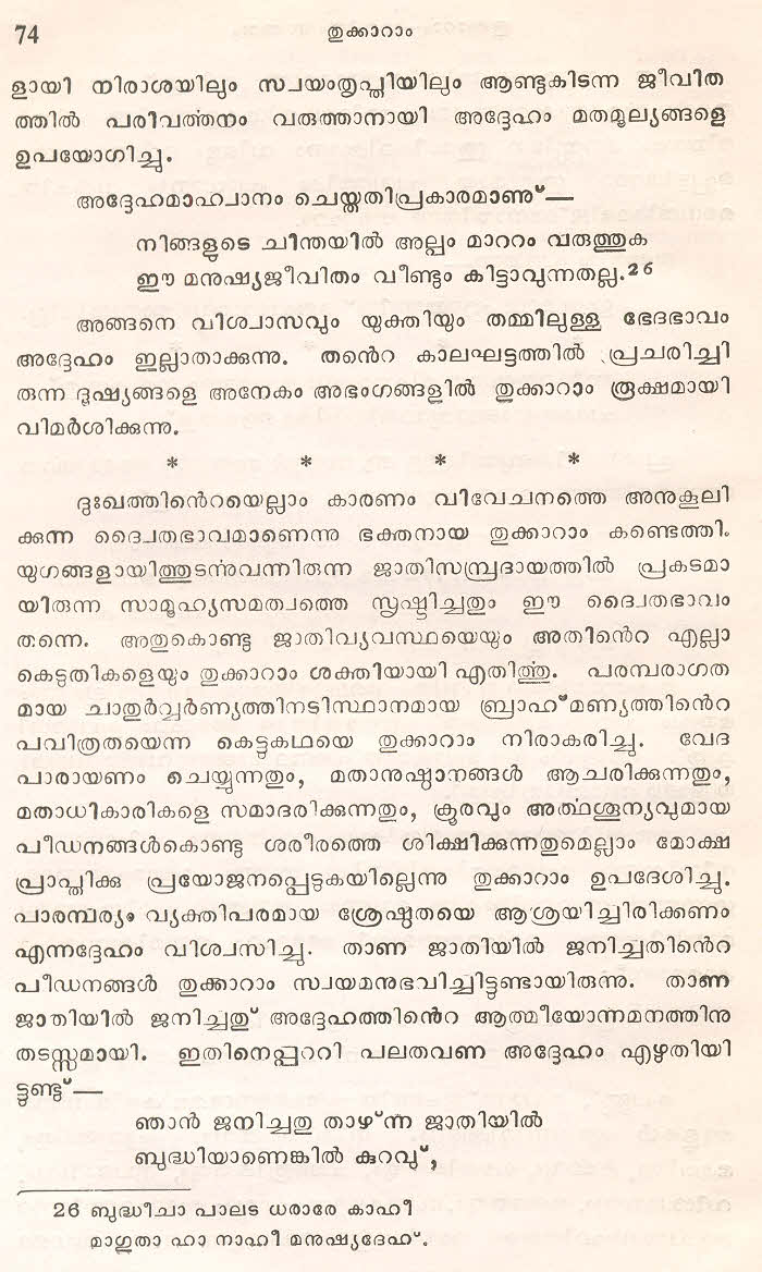 (Selected Abhangs in Marathi by the Saint Poet Tukaram Maharaj transliteration and with meaning given in Malayalam)