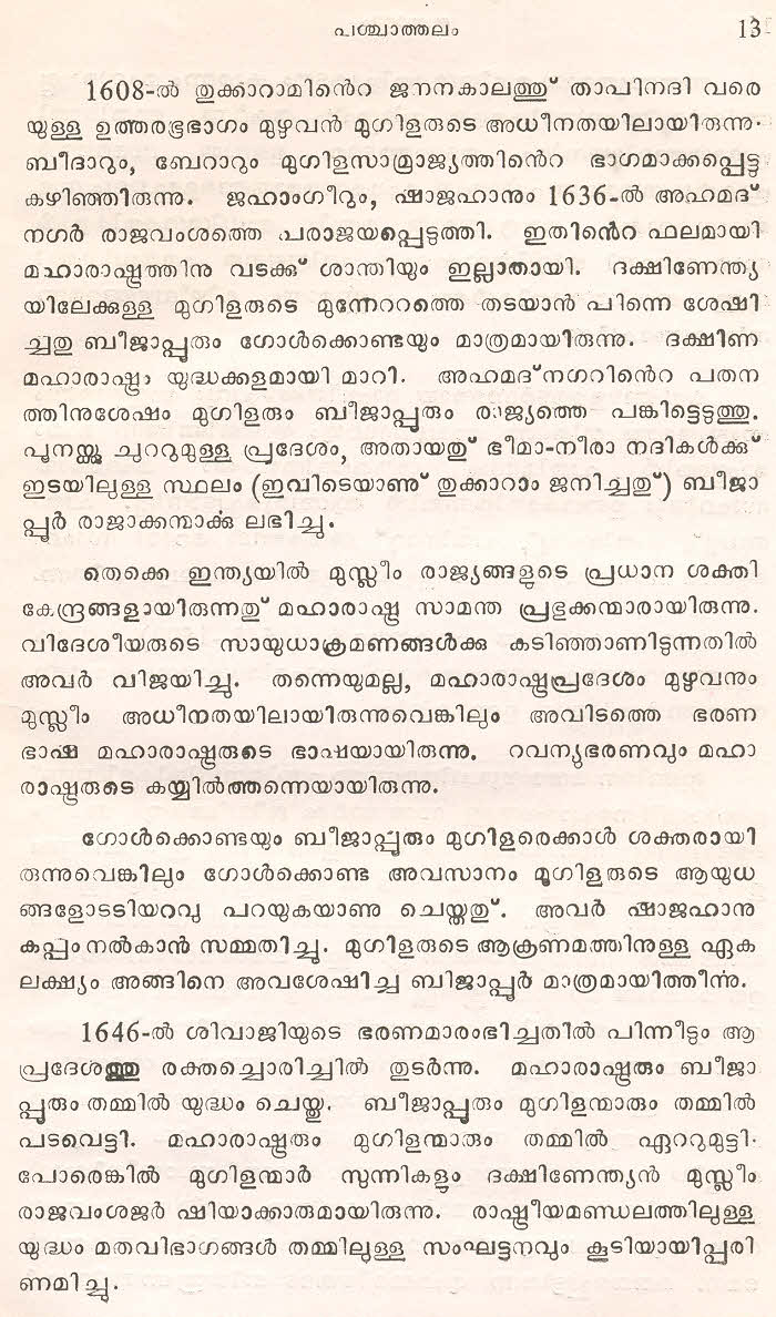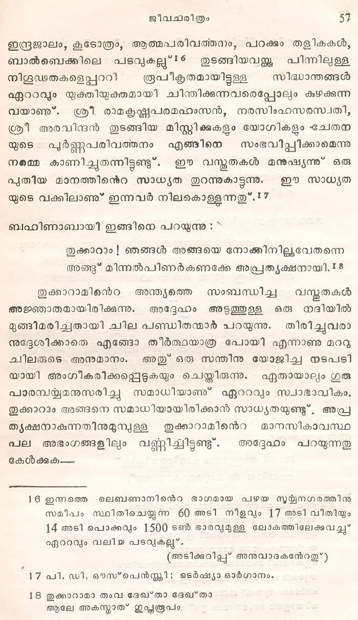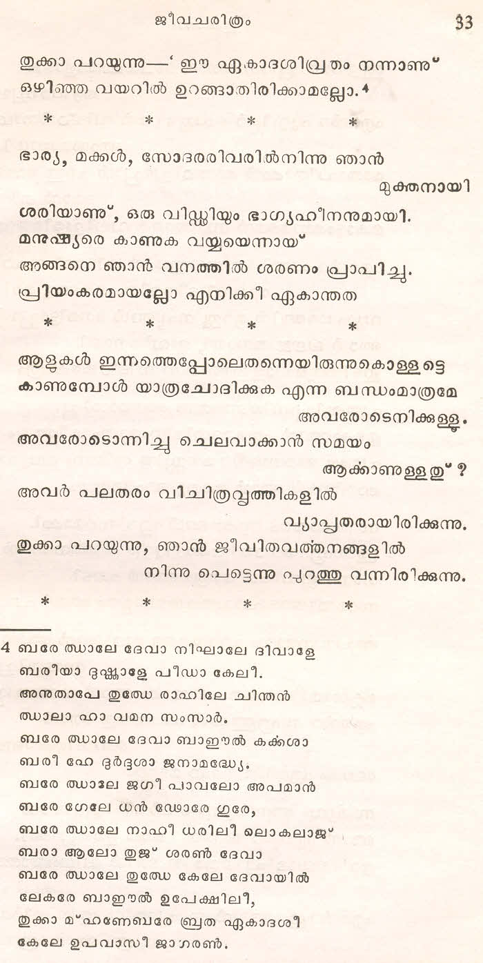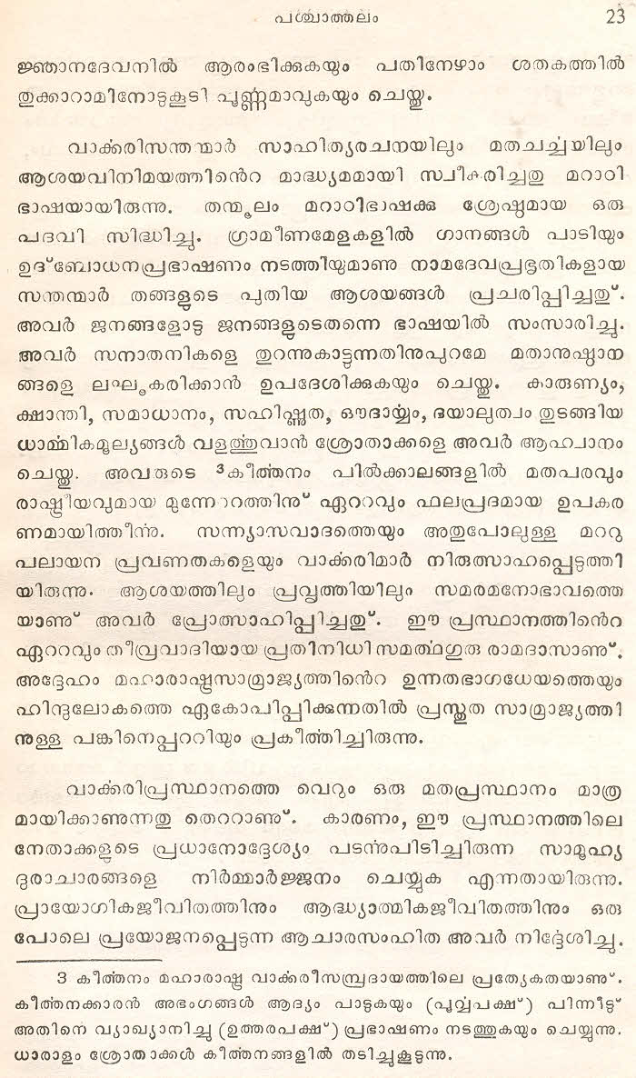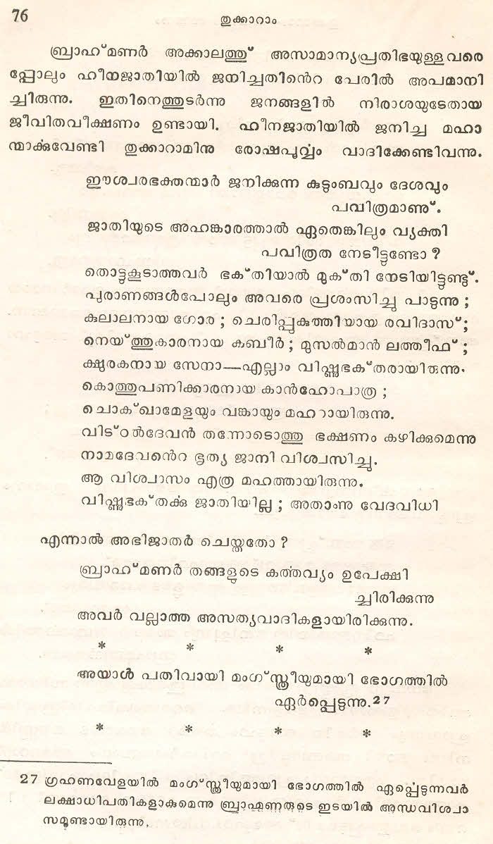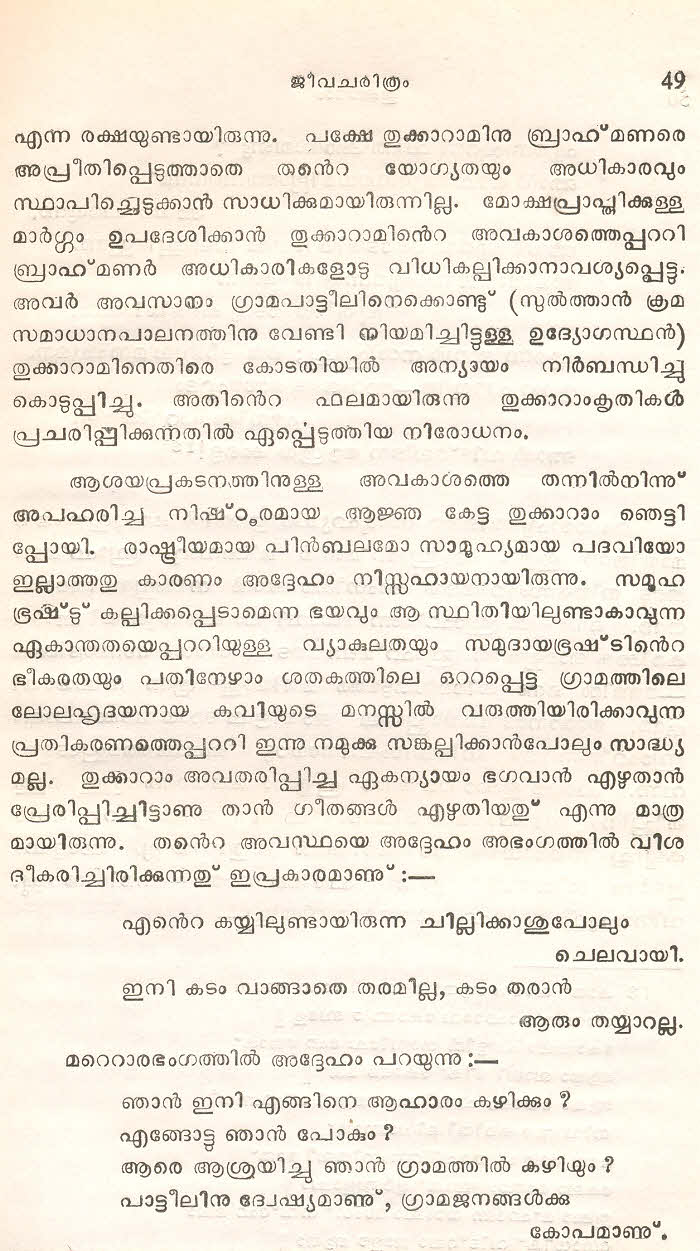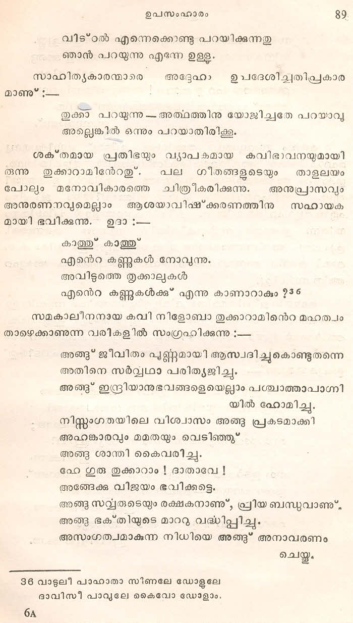 (Selected Abhangs in Marathi by the Saint Poet Tukaram Maharaj transliteration and with meaning given in Malayalam)