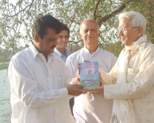 प्रो. लछमण हर्दवाणी (साजे॒ पासे) जे पुस्तक जो महूरतु कंदे आमदार श्री. अनिल राठोड़ (खाबे॒ पासे), इंद्रायणी नदीअ जे किनारे ते देहू (पुणे, महाराष्ट्र) में.